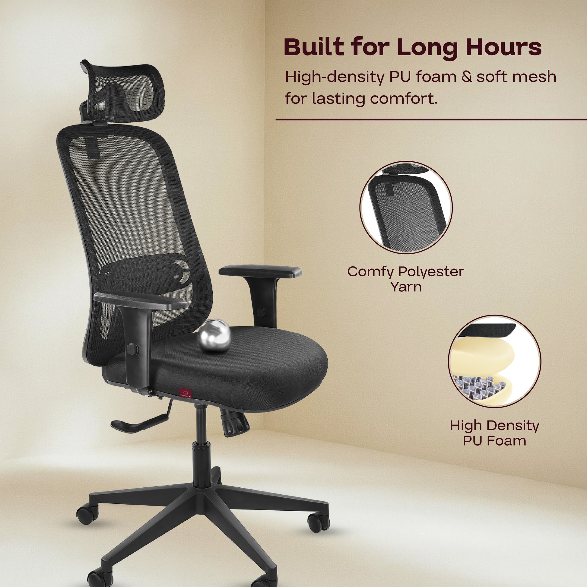 Every Bezomè chair is thoughtfully engineered, not just to look refined, but to feel right. Every curve, stitch, and setting is designed to support how you sit, think, and move. Explore the details that make comfort a science and sitting an experience.
