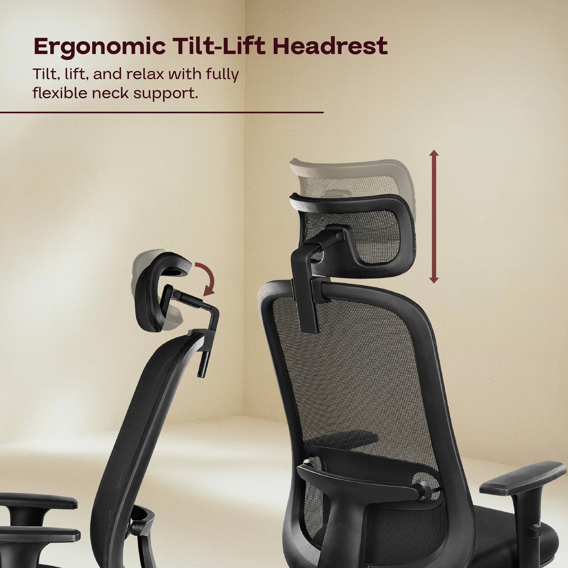 Ergonomic mesh backrest with a natural curve supports the spine. It brings everyday ease to your premium office chair experience.
